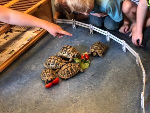 Unser erstes großes Projekt in diesem Sommer waren die Schildkröten. Da habe ich viel Neues erfahren, z. B. wie leben Schildkröten? Was fressen sie? Aber am aufregendsten war, als wir Besuch von echten Schildkröten bekommen haben und sie ganz lange beobachten konnten.