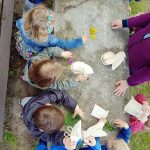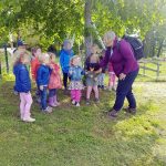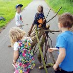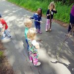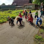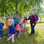 Spielerisch werden viele interessante Dinge vermitteln, z. B. Wie weit springt ein Reh? Wie weit das Eichhörnchen? Im Mitelpunkt stehen bei dem Ausflug Blumen, Pflanzen im Allgemeinen und Stöcker.