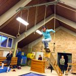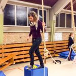 Bewegung ist für Körper und Geist von großer Wichtigkeit für die Entwicklung, das Wachsen und der Sprachbildung. Also probieren es unsere Erzieherinnen unter Anleitung selbst aus, um zu erfahren, welche Schritte die Kinder gehen und welche Überwindung teilweise zu fühlen ist.