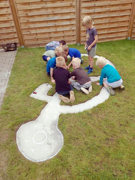 Die Zwerge sind super Straßenbauer – erst gebuddelt, dann Beton gemischt und 25 kleine Schubkarren später war das Ergbnis schon erkennbar. Jetzt musste es nur noch trocknen und bemalt werden… und dann konnte endlich gespielt werden! Das war ein Abenteuer!