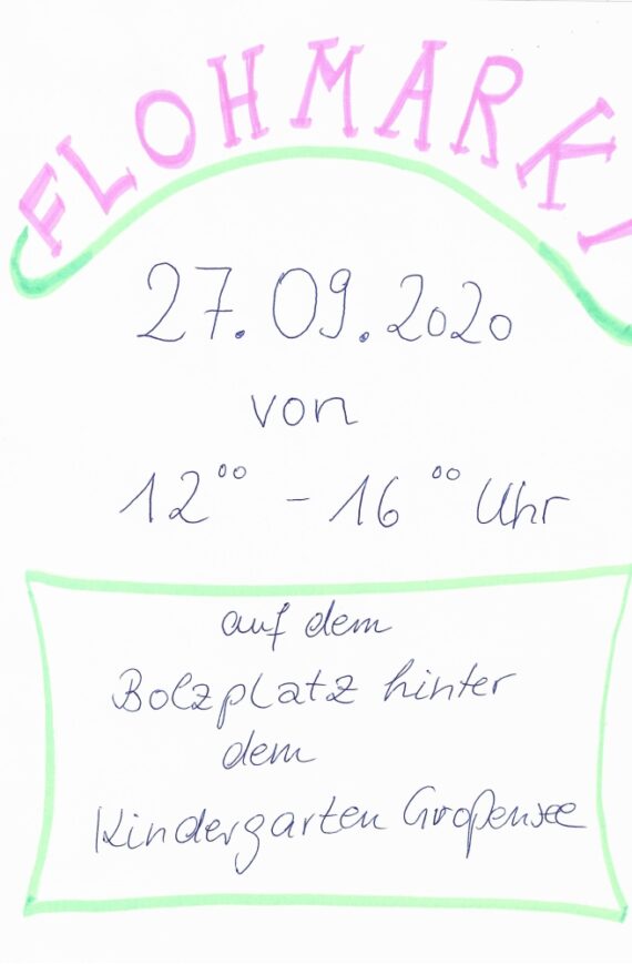 Wir laden zum Kinder- und Kleiderflohmarkt in Großensee ein. Der Standflohmarkt findet im Freien statt, auf dem Bolzplatz hinter dem Dörphus. Datum: Sonntag, den 27.09.2020 Uhrzeit: 12-16 Uhr Parkmöglichkeiten gibt es beim Sportplatz. Verköstigung: Waffeln und Kaffee Bitte beachtet die […]