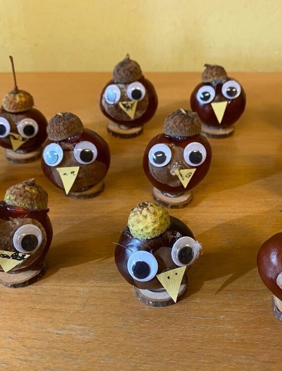Die Dinos haben Kastanienvögel gebastelt und hatten viel Spaß dabei!